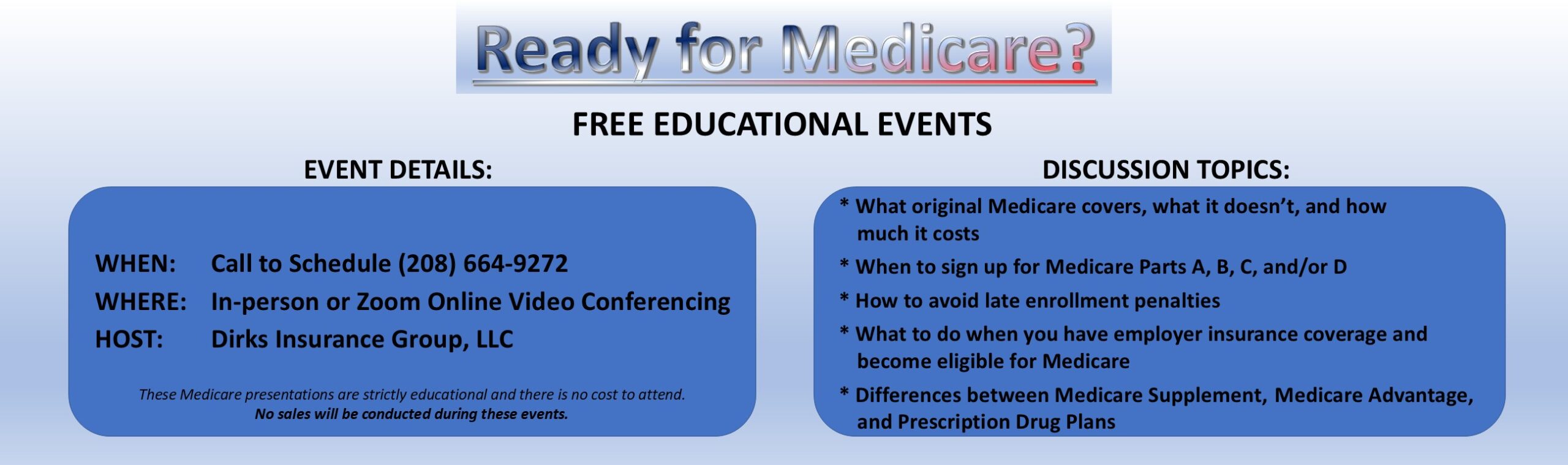 Dirks Insurance Group is a locally owned, independent insurance agency. We proudly serve as trusted Medicare & Health Insurance Advisors in Coeur d’Alene CDA with personalized insurance solutions for individuals, families, and small businesses across North Idaho.