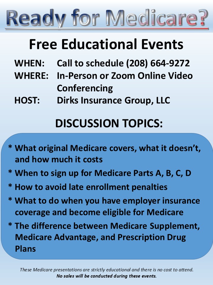 Are you looking for help navigating Medicare Insurance in Coeur d’Alene CDA? At Dirks Insurance Group, we specialize in helping clients understand their Medicare options and find the coverage that fits their needs and budget.